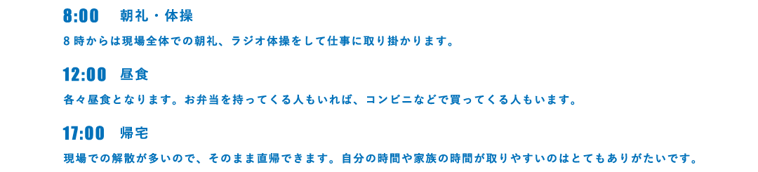 それと現場の場所によって朝起きる時間が変わるのも少々つらいところかと思います。